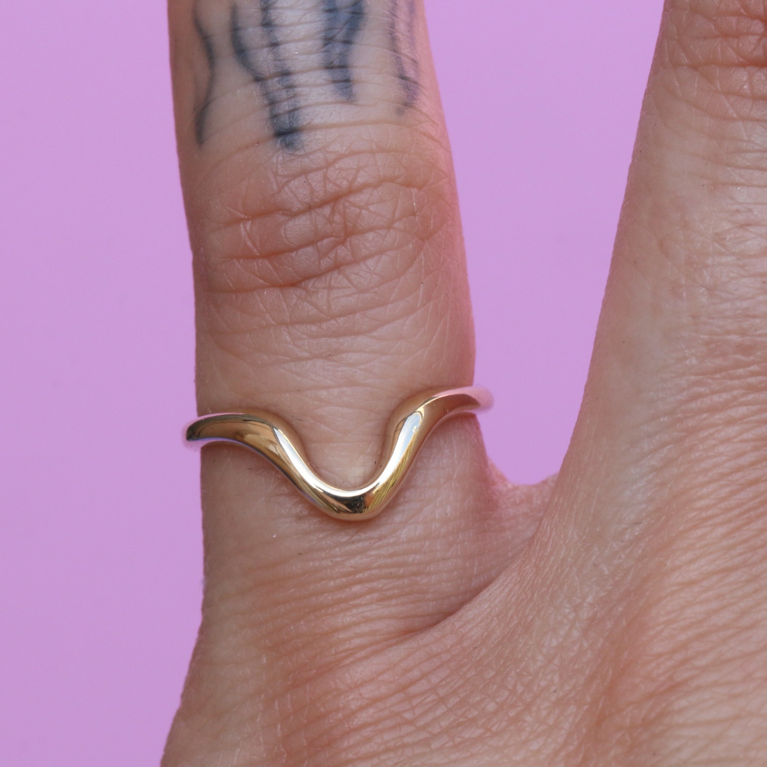 The Arc Ring is a delicate, curvy, babe – made to stack or wear alone. Handmade in yellow gold with a polished finish.