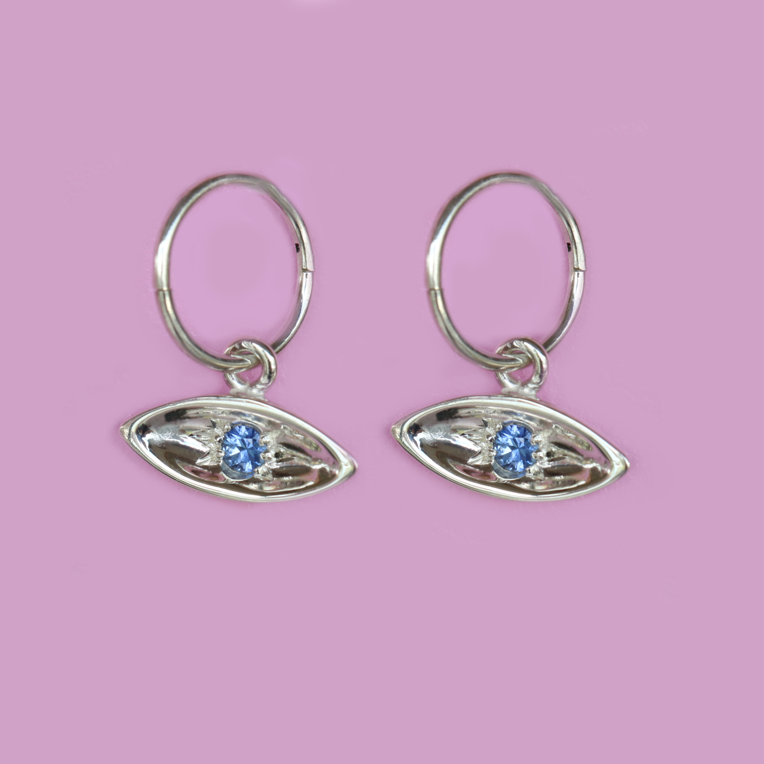 Ward off bad energy with Evil Eye Sleeper earrings. Taking inspiration from Anastasia’s Greek heritage these bad gal earrings are a modern take on an ancient symbol. Available in sterling silver and 9ct yellow gold they each feature a 2.5mm blue sapphire. Mix and match with one sun and one eye! The sun features a 4mm Australian opal.