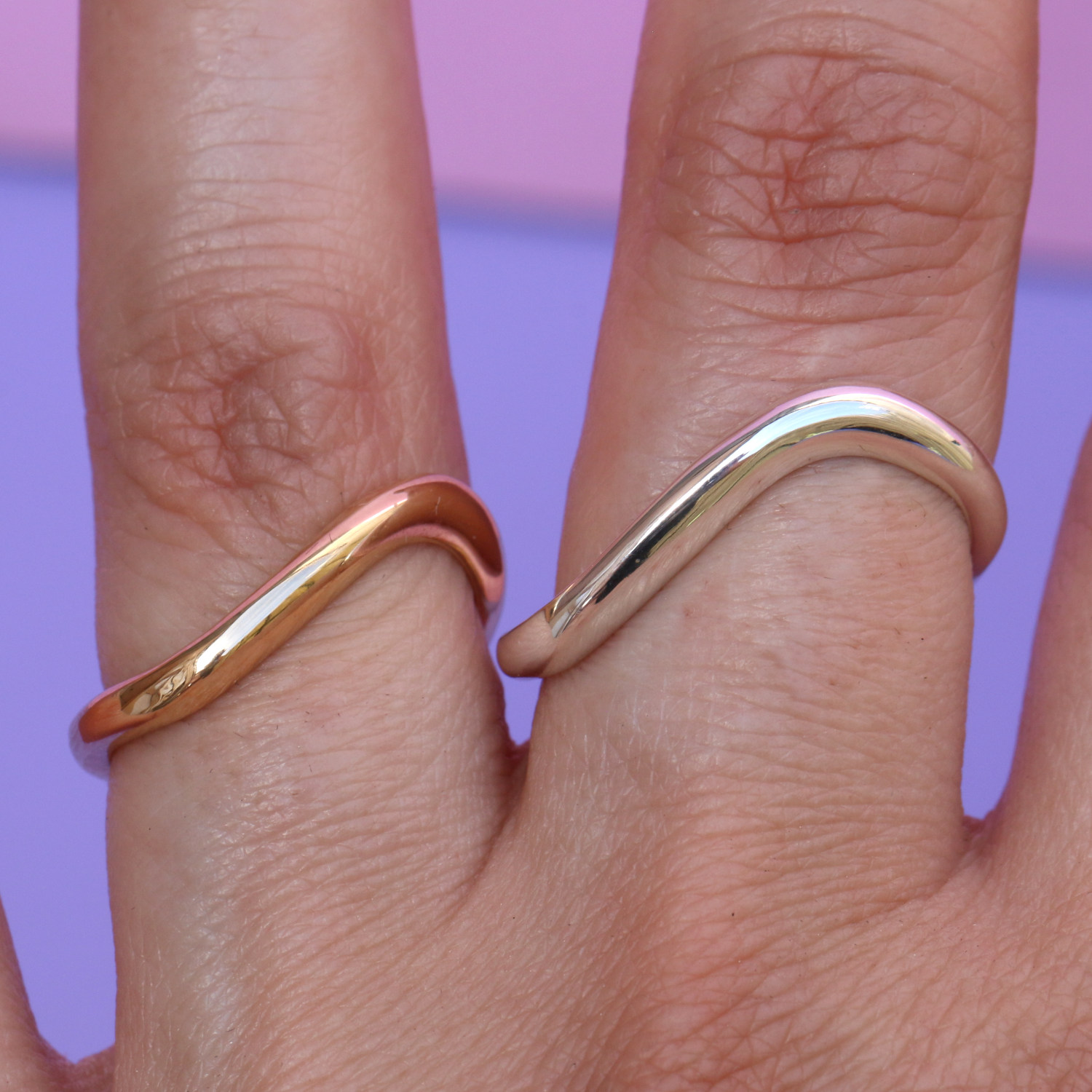 The Flow Ring is a wavy dream. Made to sit on a slight diagonal with a focus on flow and form. Made in sterling silver with a polished finish.
